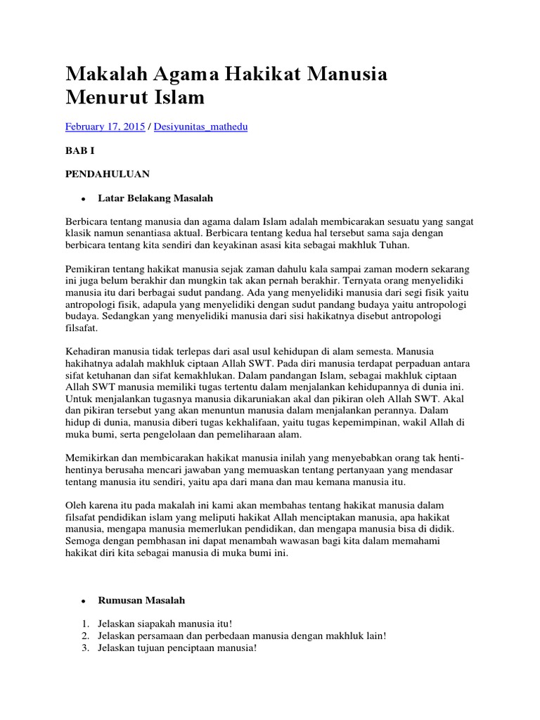 Manusia Diciptakan Untuk Apa Quranic And Tafsir Studies from iqt.unida.gontor.ac.id Maybe you would like to learn more about one of these? Check spelling or type a new query. We did not find results for: Pertanyaan tentang hakikat penciptaan manusia.